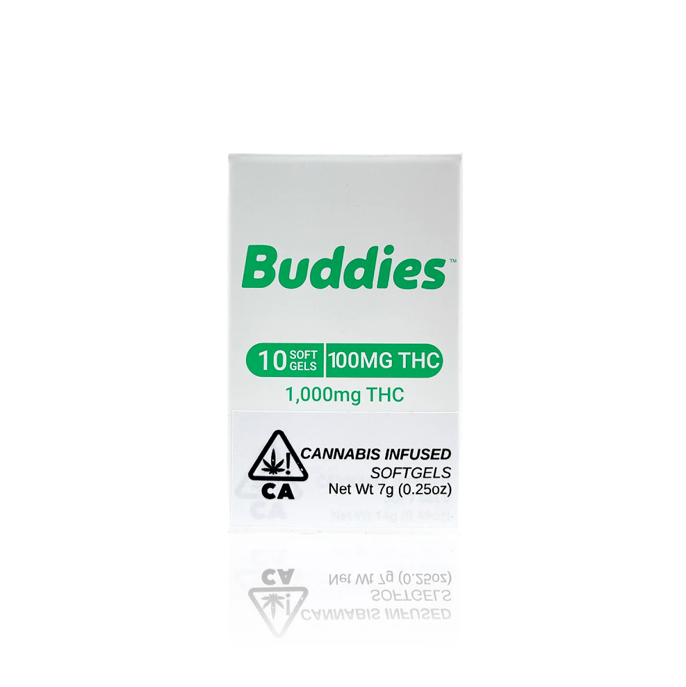 THC SOFTGELS Buddies’ premium THC softgels offer a potent, controlled experience thanks to precise dosing and a variety of milligram options. Convenient and cost-effective compared to other edibles, our softgels are ideal for those seeking to replace pharmaceuticals with natural alternatives. With Buddies THC Softgels, you can always be sure you're harnessing the full potential of your THC. Ingredients: Gelatin, Glycerine, MCT Oil, Distilled Cannabis Oil