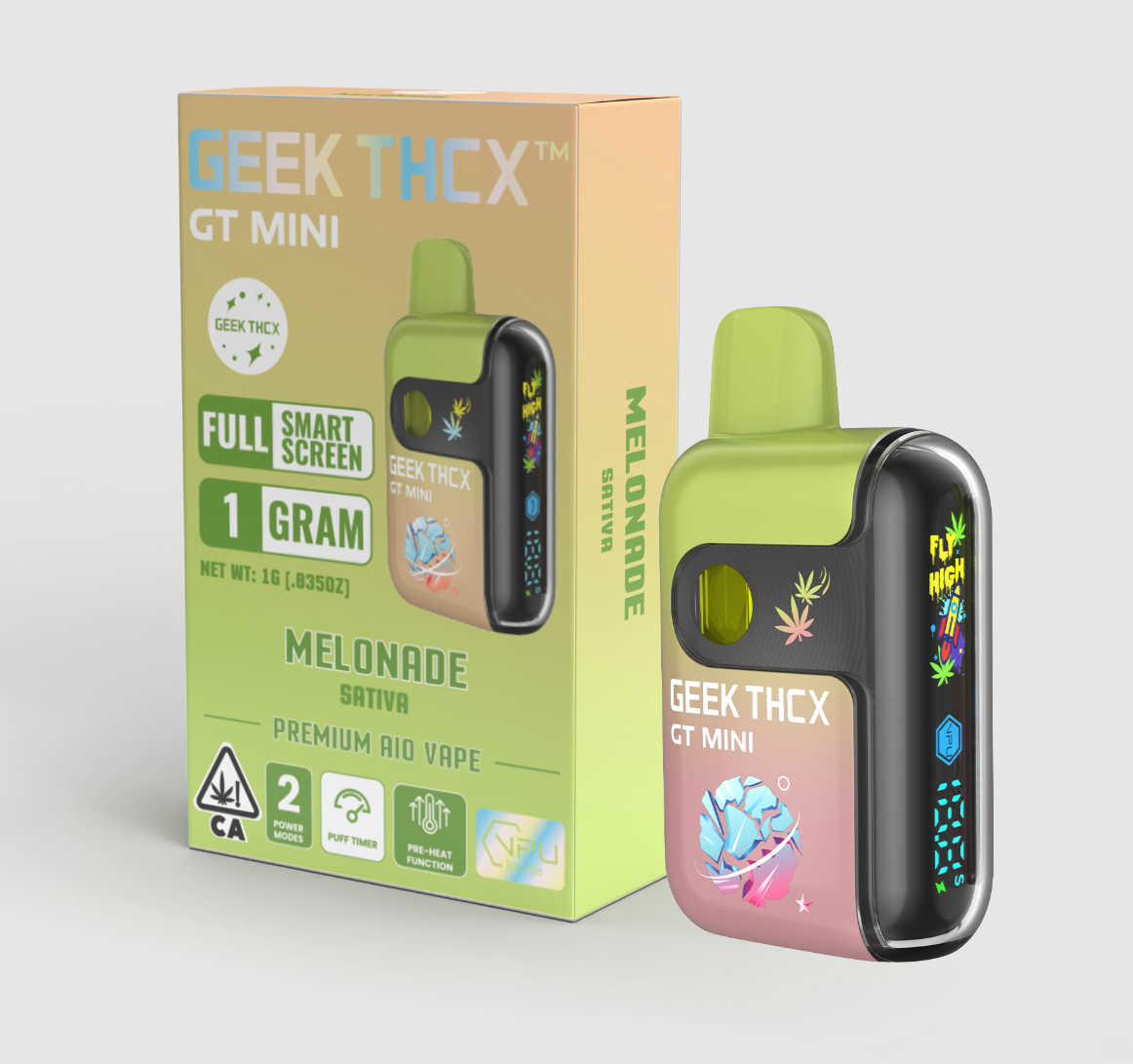 GEEK THCX™ brings cutting-edge vape technology to cannabis. Our GT MINI 1g all-in-one devices feature the first-ever full-screen dual-mesh vape, powered by the VPU chip from GEEK BAR for ultra-smooth draws. Filled with 90%+ potency, pesticide-free, full-spectrum oil, every puff delivers clean flavor and powerful effects. With interactive features like a puff counter and battery display, GEEK THCX™ blends premium cannabis with next-gen tech—built for trendsetters, OGs, and anyone who wants the real deal.