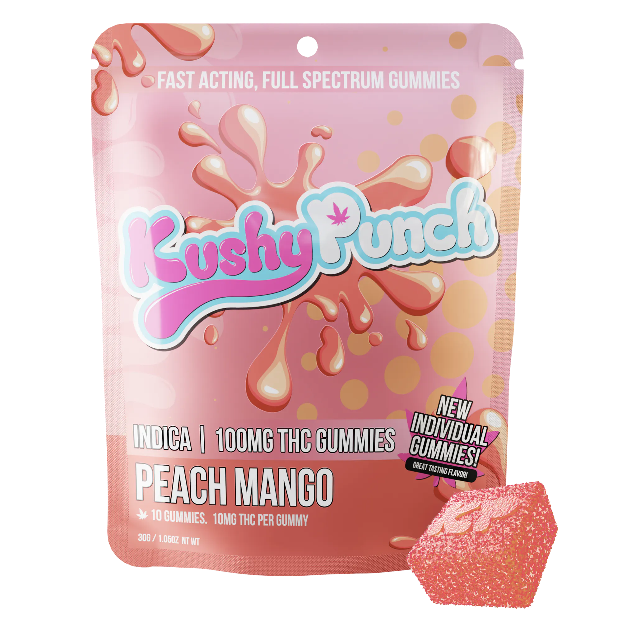 Kushy Punch Indica Peach Mango INDIVIDUAL GUMMIES 100MG
