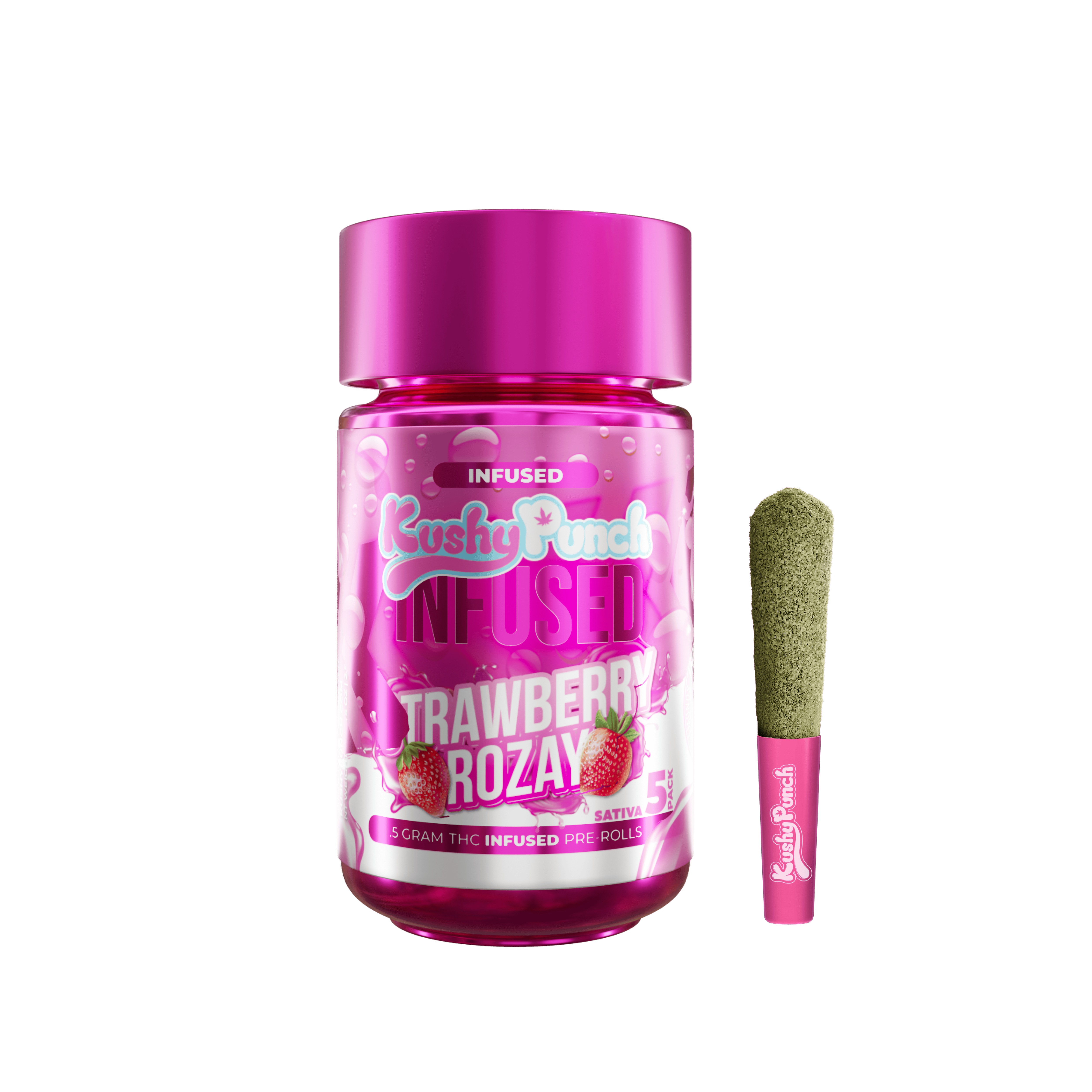 Take your high to new heights with Strawberry Rozay , a lively strain bursting with juicy strawberry flavor and a smooth, energizing kick. Infused with liquid diamonds, each puff delivers a sweet, refreshing explosion that lifts your spirits and sharpens your focus. With a crisp finish that keeps you motivated, Strawberry Rozay Infused Pre-Roll is the perfect choice for those seeking an uplifting boost of energy.