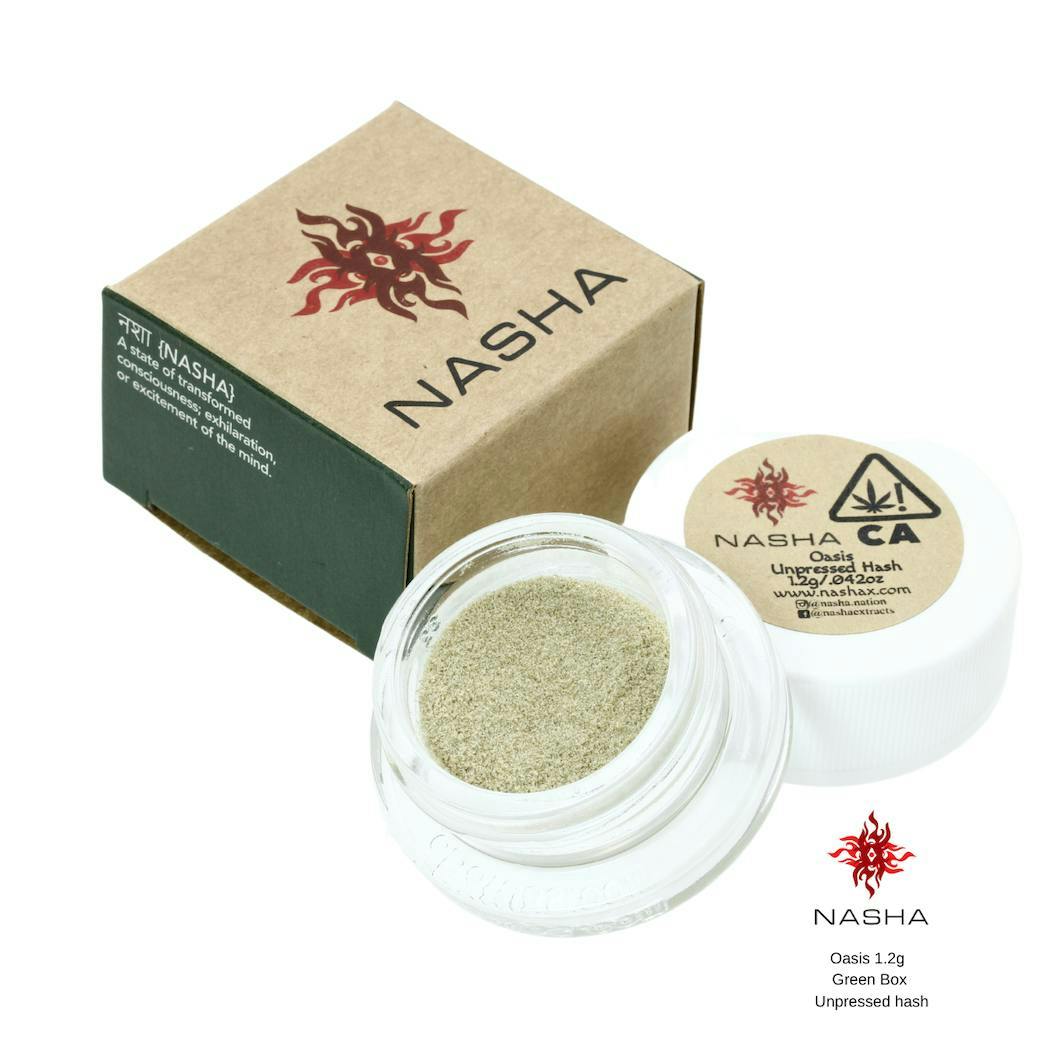 Nasha’s Green Label Hash is 1.2g of powdered hash packaged in a loose form straight from the drying process, that tends to melt and clump together if left at room temperature. It has a higher ratio of plant material to oil, similar to old-school hash. Commonly used to top bowls or added to joints for an added kick to your regular routine."