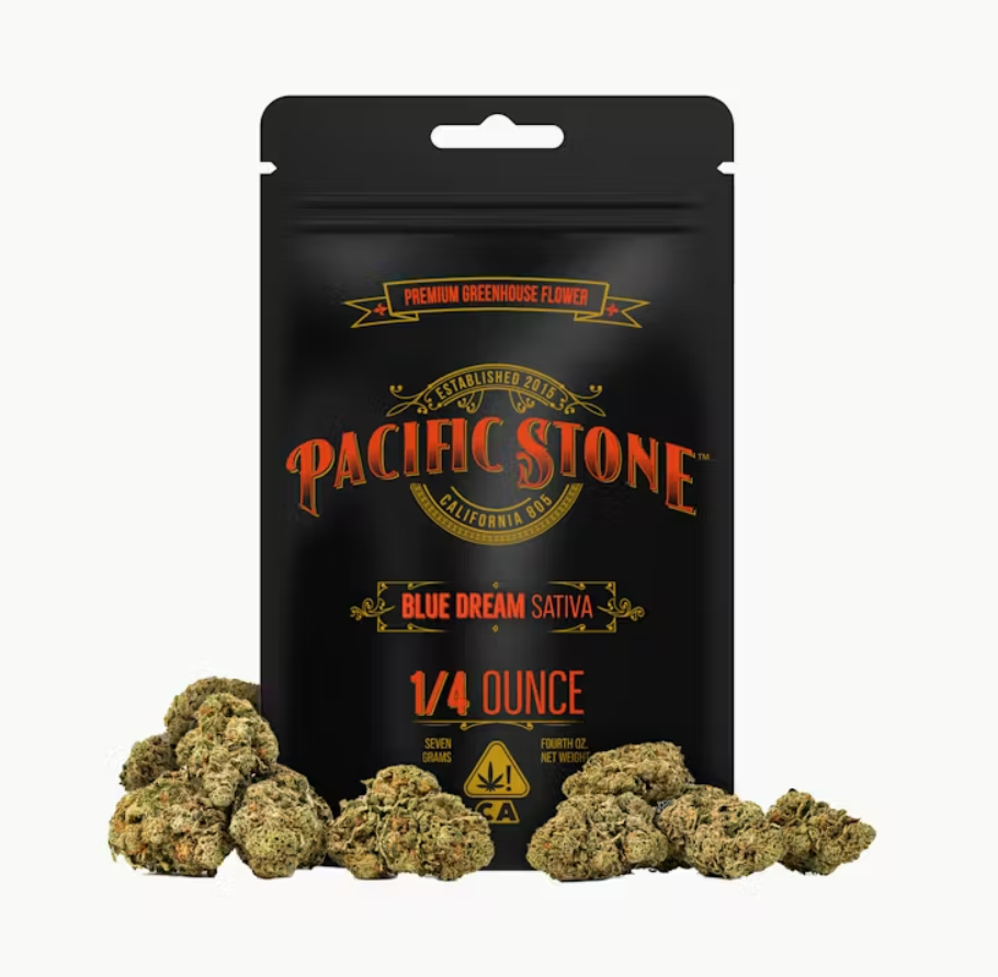 One hundred percent Premium California Cannabis that comes in four different sized pouches: 1/8th (3.5G), 1/4th (7G), ½ ounce (14G), and 1 ounce (28G). Our Dutch coastal greenhouses provide a consistent and controlled environment for our flower to thrive. A smile and consistent smoking experience in every bowl of Pacific Stone’s Premium California Flower. We only sell what our Pac Stone team grows and cures to bring you farm-direct California cannabis at an affordable price.