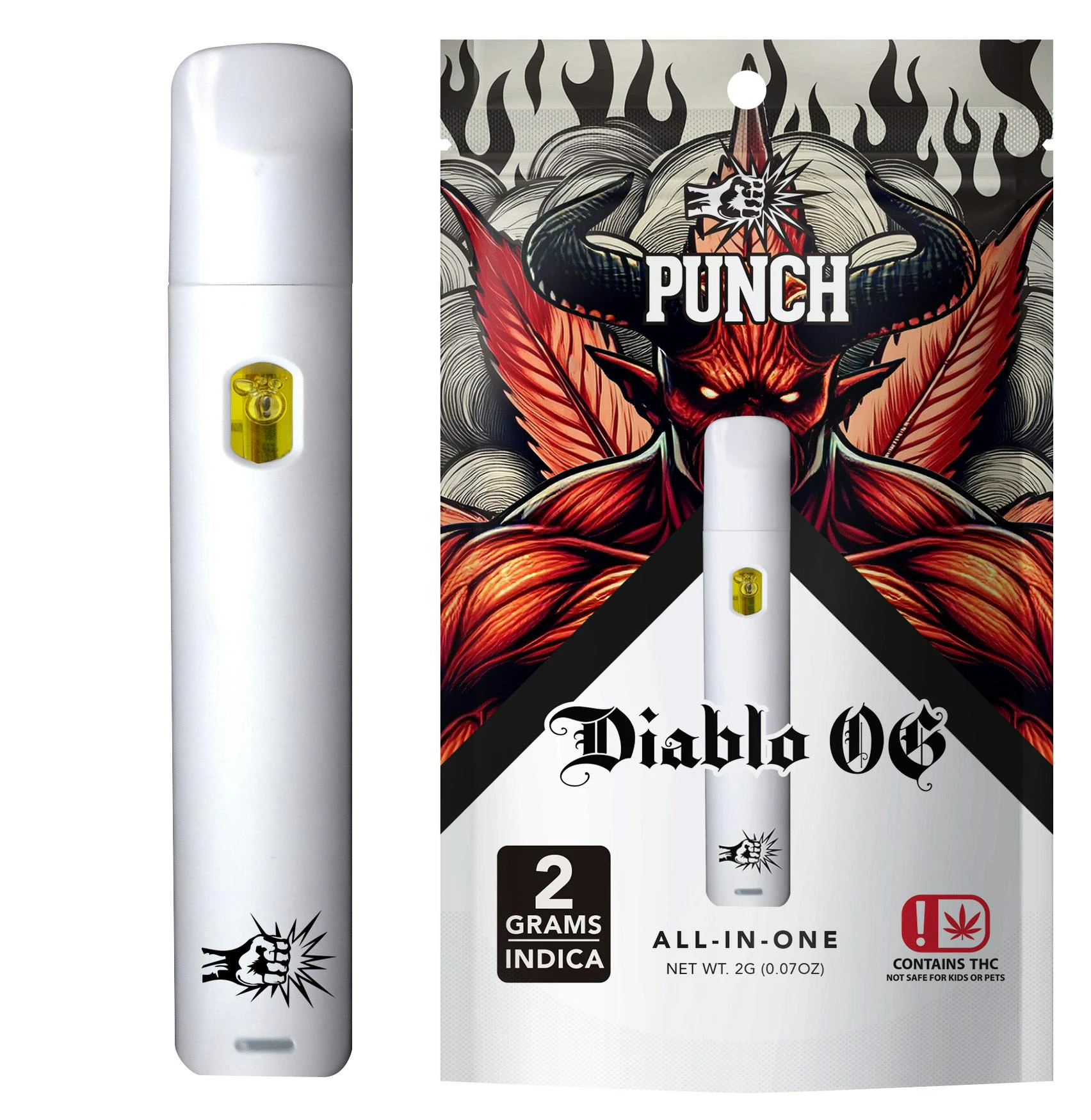 Diablo OG 2g Distillate AIO Vape offers robust and earthy aromas, it delivers a smooth and balanced hit with notes of pine and citrus. The effects of Diablo OG are known to be intensely relaxing and euphoric, making it a great choice for unwinding after a long day or for those seeking relief from pain and stress.2G of Premium Distillate