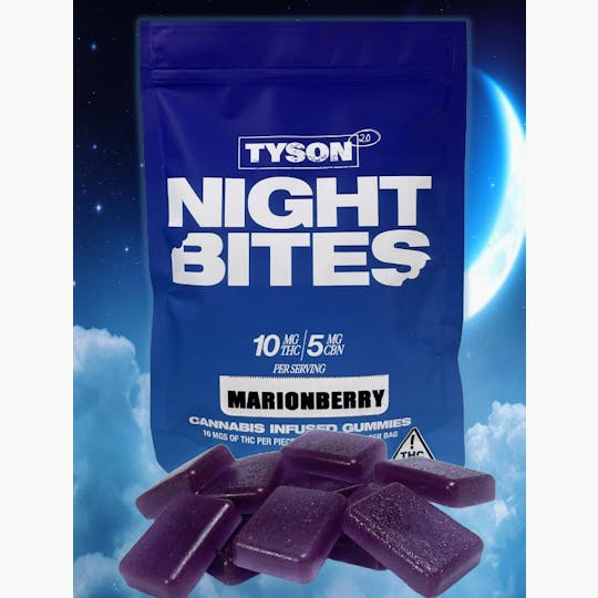 Experience relaxation like never before with Tyson 2.0 Night Bites Indica 100mg now available at Southern Sky Brands. Crafted with care and precision these premium gummies are infused with 100mg of high-quality cannabis extract offering a soothing and tranquil experience. Indulge in the calming effects of indica as you savor the delicious flavors of Night Bites. Each gummy is meticulously crafted to deliver consistent potency and exceptional taste ensuring a delightful experience with every bite. Handpicked ingredients and Tyson 2.0s expertise guarantee unparalleled quality in every batch of Night Bites Indica 100mg. Elevate your relaxation routine with these indulgent gummies exclusively available at Southern Sky Brands.