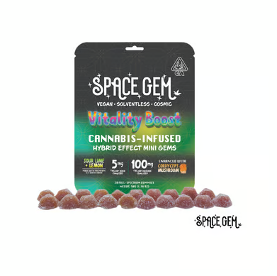 Recharge with Vitality boost, the perfect hybrid of body and mind. Each vegan gummy combines Cordyceps mushroom and solventless ice water hash for a clear, sustained high that enhances endurance and motivation. With 5mg THC per piece, this Sour Lemon & Lime flavor brings a crisp, citrusy lift to any moment — whether you’re exploring outdoors or flowing through a creative project.