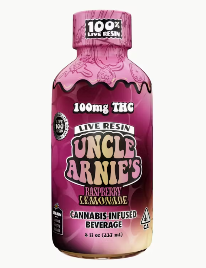 Uncle Arnie's Beverage 8oz 100% Live Resin Raspberry Lemonade 100mg