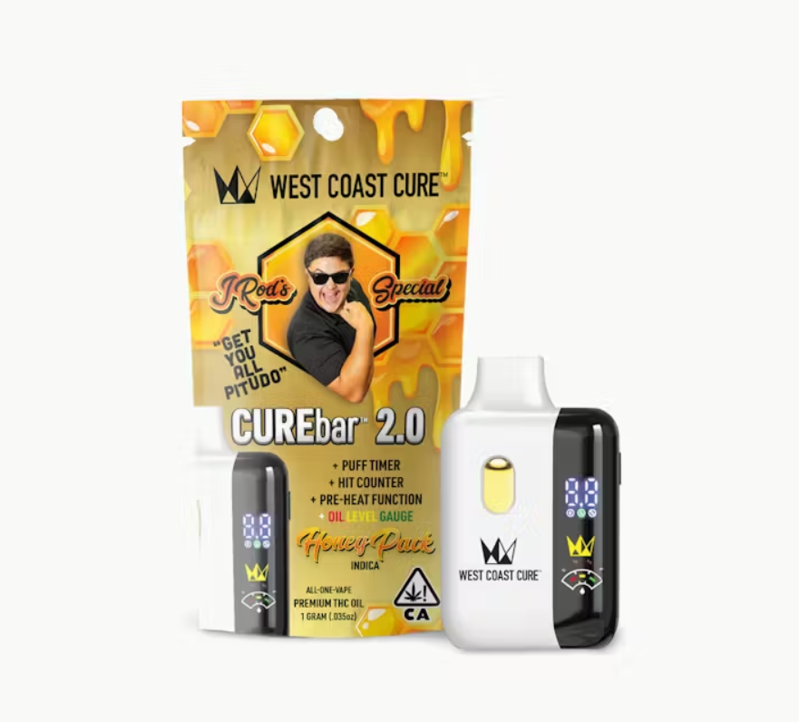 he JRod Special Honey Pack CUREbar 2.0 is as smooth as it sounds. This Indica All-In-One vape blends sweet honey flavor with that signature WCC gas for a heavy high that's perfect for kicking back after a long day or keeping you going throughout the night (IYKYK). Approved by JRod and crafted by WCC, this honey pack will get you all pitudo.