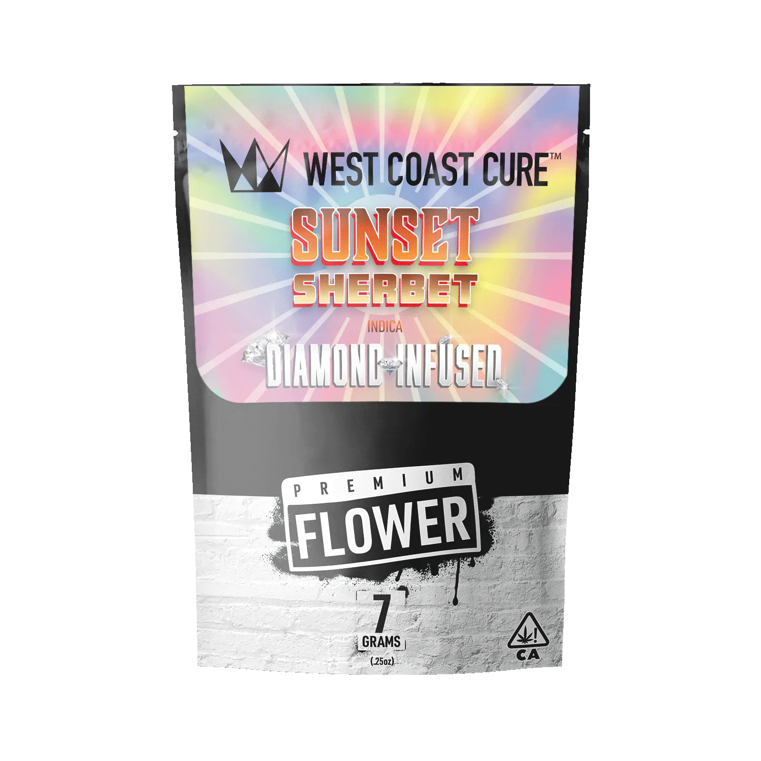 Sunset Sherbet Diamond Infused Premium Flower is a fusion of fire, stacking the legendary genetics of OG Kush, Cherry Pie, Durban Poison, and Pink Panties into one high-octane experience. Infused with pure THCa diamonds, this hybrid delivers a deep, heady rush before melting into a state of bliss. Its terpene-heavy profile brings layered intensity, making every hit a bold statement. Perfect for those who crave flavor, potency, and an edge that won’t quit.